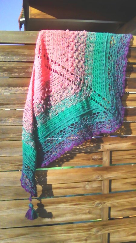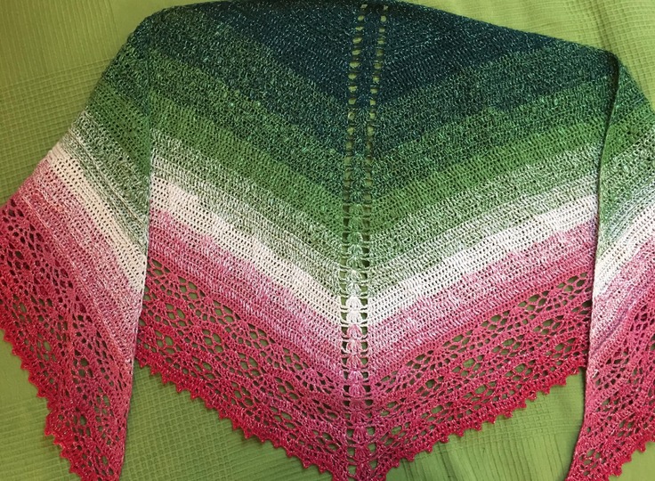 je nach dem Welche Dicke eure Wolle hat und welche Größe er Häkelnadel Ihr nutzt je größer wird euer Tuch einzelne Abschnitte lassen sich beliebig wiederholen so das dein Tuch deine Wunschgröße erreicht