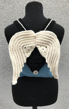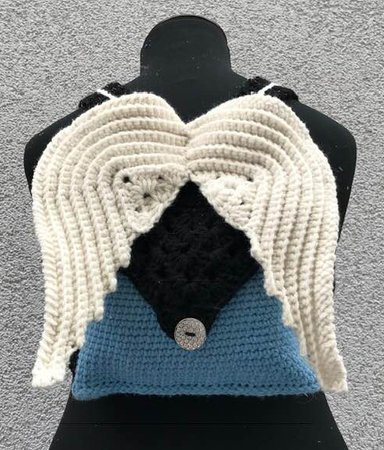 1 Knäul weiß... 1 Knäul blau... 1 Knäul schwarz...und ein Knopf mit einem Durchmesser von 3 cm.....und um die Flügel eventuell noch zu verstärken noch weiße Pfeifenputzer