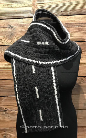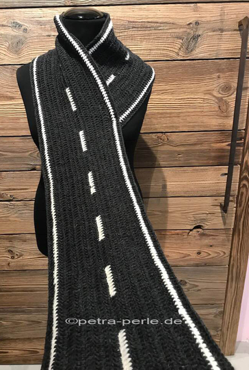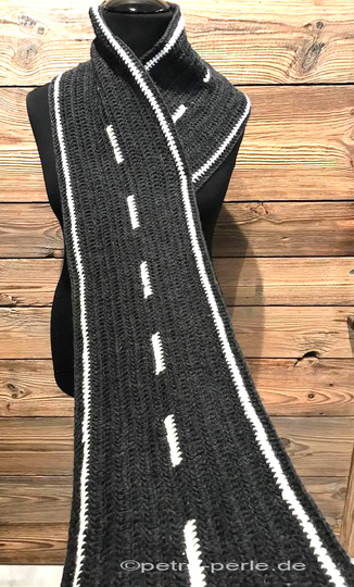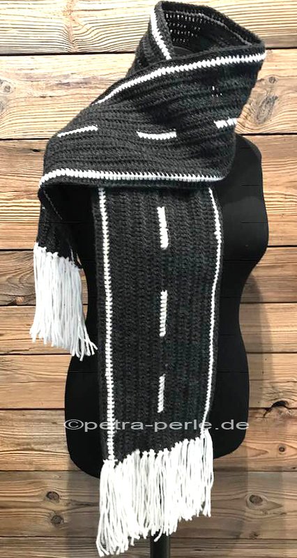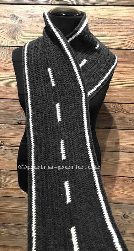 Der stylische Schal AUTOBAHN ist flott gehäkelt und auch gut für Anfänger und ein tolles Designe für Männer und Jungs !