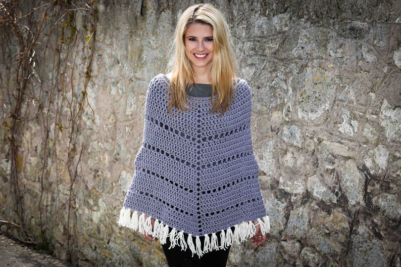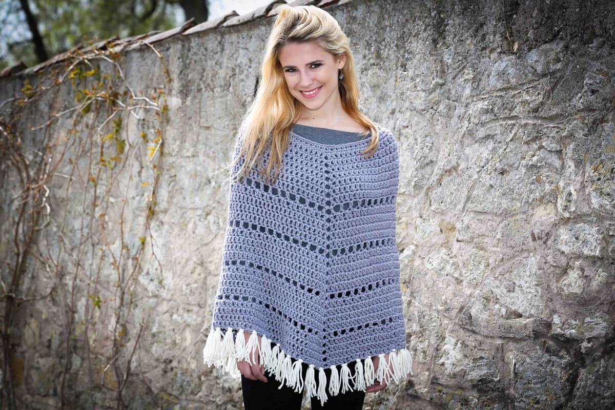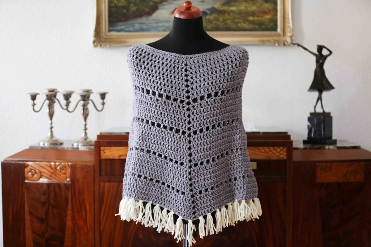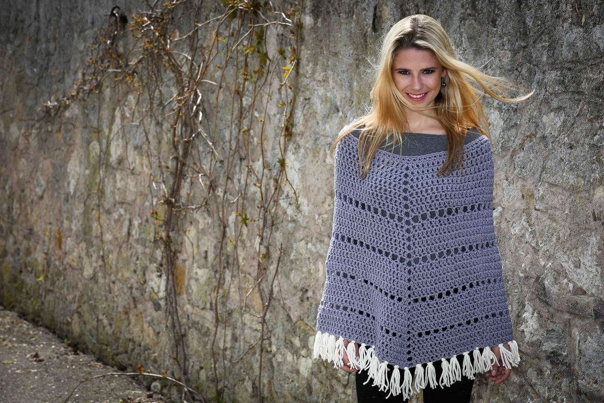 In dieser einfachen Anleitung für Anfänger wird dir auf einer PDF mit 4 Seiten und 5 Bildern (3 Tragebilder und 2 Anleitungsbilder) erklärt, wie du diesen hübschen Poncho häkeln kannst.