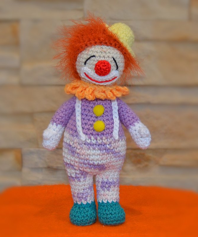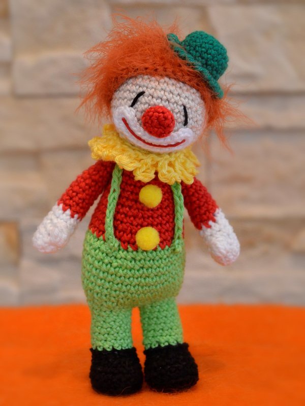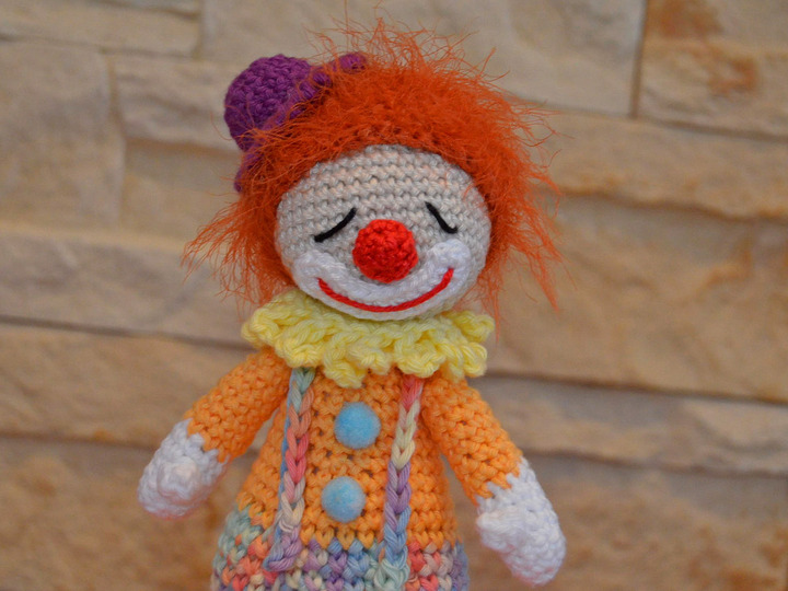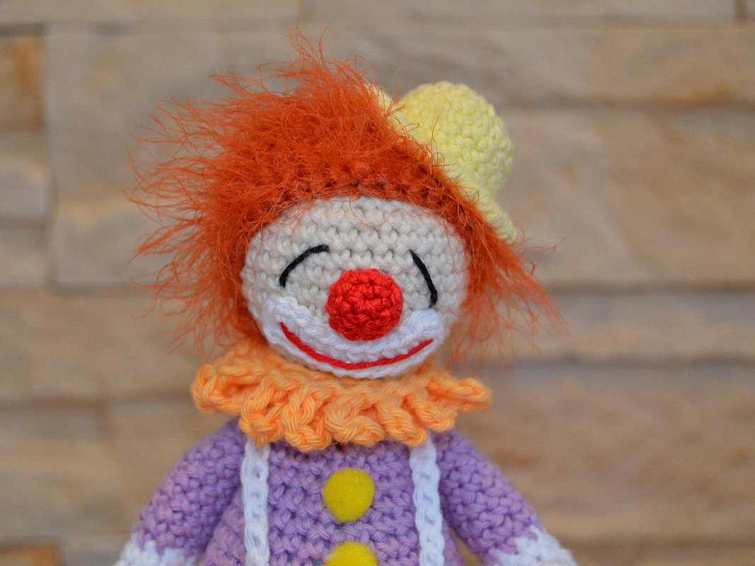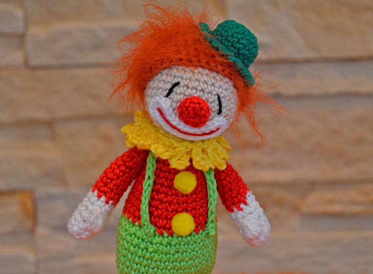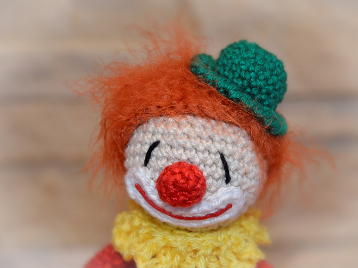 Die Haare vom Clown habe ich mit Lana Grossa Nuovo (nicht Nuovo Mohair!) und Lana grossa Estivo gefertigt, diese Wolle lässt sich super verarbeiten, du brauchst hier keine Angst haben dass du die Maschenglieder nicht erkennen kannst. Ebenfalls geeignet ist Fischer Wolle Pisa.