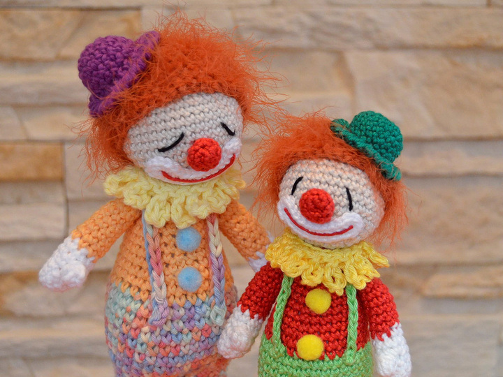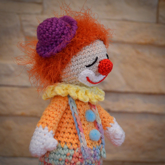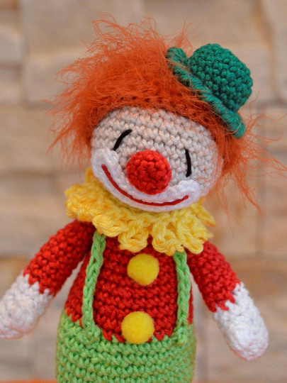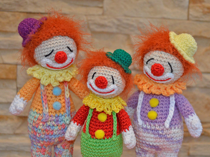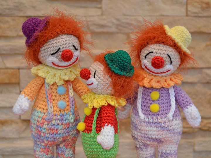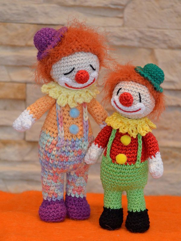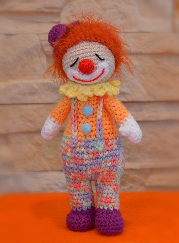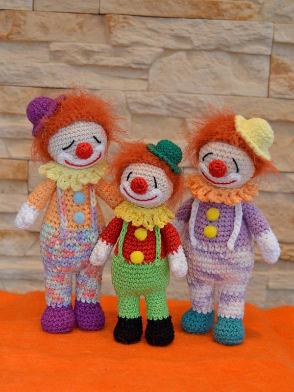 Die Haare vom Clown habe ich mit Lana Grossa Nuovo (nicht Nuovo Mohair!) und Lana grossa Estivo gefertigt, diese Wolle lässt sich super verarbeiten, du brauchst hier keine Angst haben dass du die Maschenglieder nicht erkennen kannst. Ebenfalls geeignet ist Fischer Wolle Pisa.