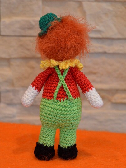 Er wird nach dem Anfertigen der Beine vom Körper bis zum Kopf in einem Stück durchgehäkelt.