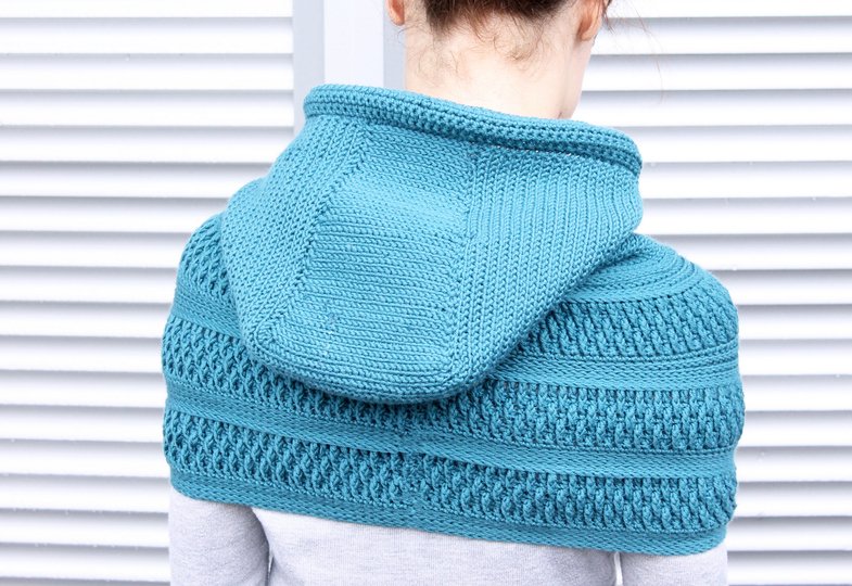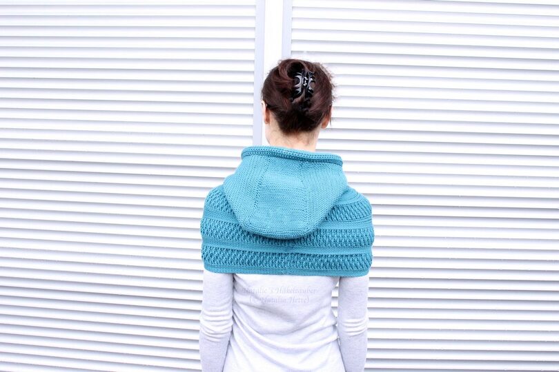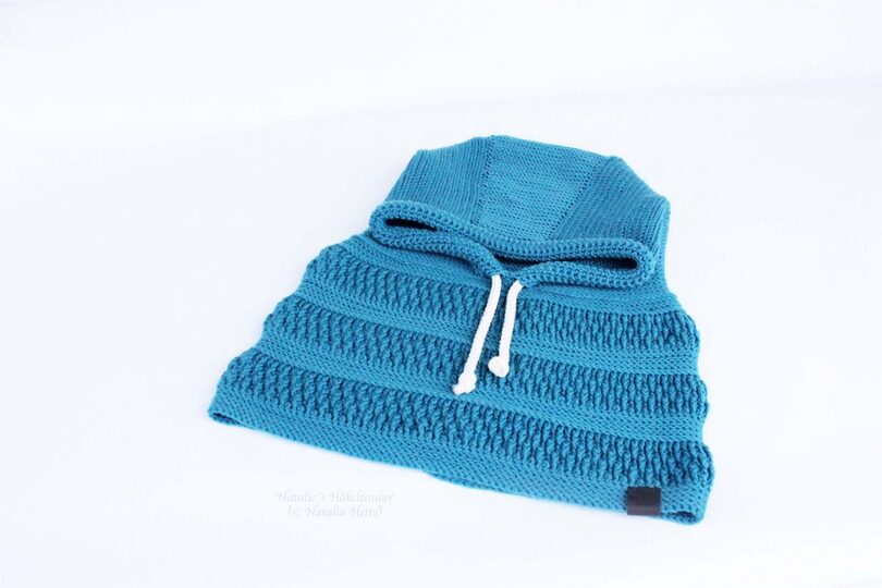 Diese PDF-Häkelanleitung besteht aus bebilderter Anleitung zum Häkeln eines Kapuzenschals (Scoody) mit dem Reliefmuster und Kettenmaschenmuster, das wie gestrickt aussieht. Den Kapuzenschal kann man entweder breiter häkeln, so dass man ihn auf den Schultern gespannt tragen kann (wird in der Anleitung erklärt) oder als Schlauchschal um den Hals herum.