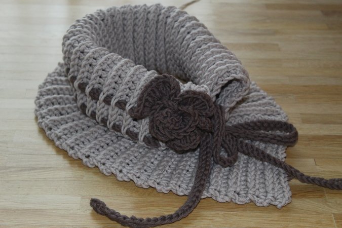 Garn: Rellana Merino Big LL 50g 85m 150g, oder beliebige Wolle in der LL. Hacken Nr. 7, für Blume Nr. 5