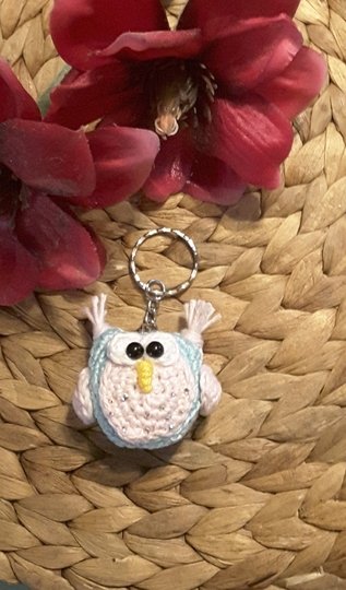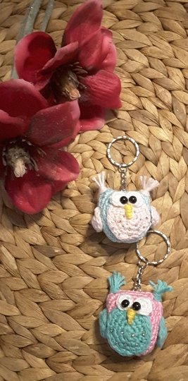 Häkelanleitung für einen Eulen Schlüsselanhänger.
