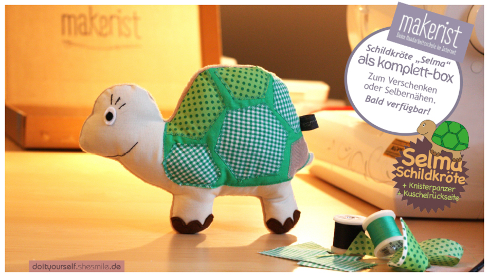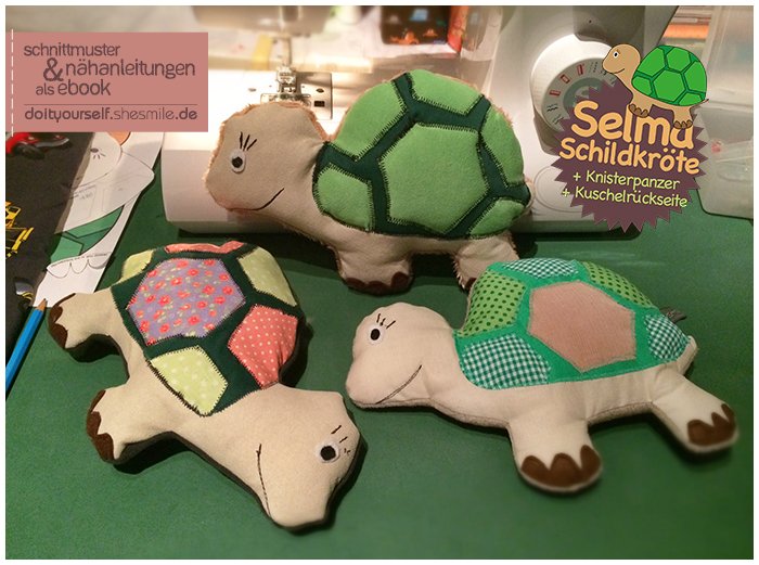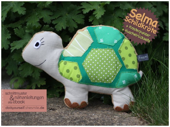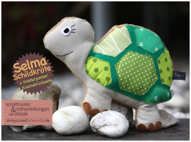 Von mir entworfene und erstellte Nähanleitung und Schnittmuster für ein Kuscheltier / kleines Kuschelkissen / Spieltier Schildkröte "Selma".