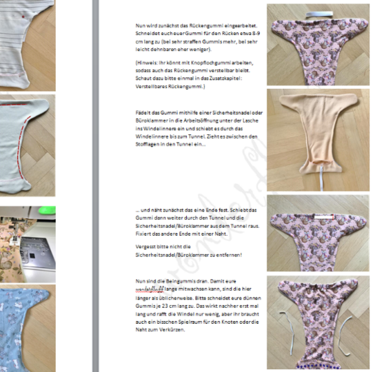 wonderfluff bringt einen gut ausgereiften Schnitt in Onesize mit toller Passform und ein ausführlich bebildertes und ordentlich ausgearbeitetes eBook mit. Im eBook sind zwei Verarbeitungsvarianten und zwei Verschlussvarianten ausführlich beschrieben. Zusätzlich findet ihr Kurzbeschreibungen zu diversen Abwandlungen und Spielereien – die Probenäher waren kreativ.
