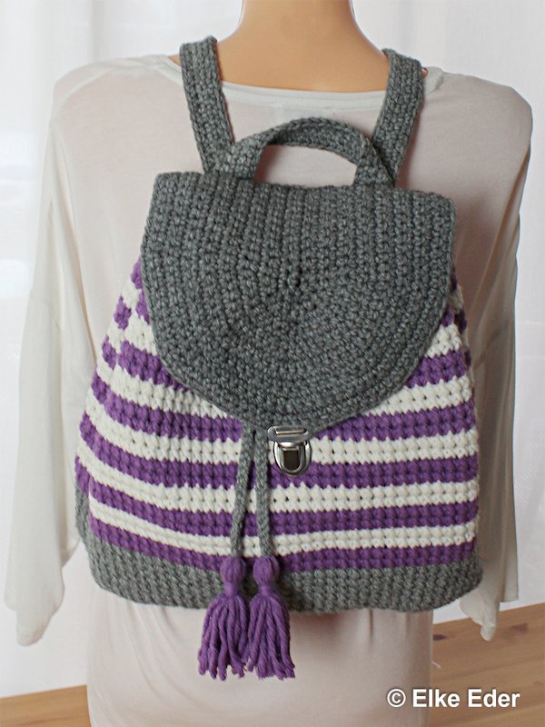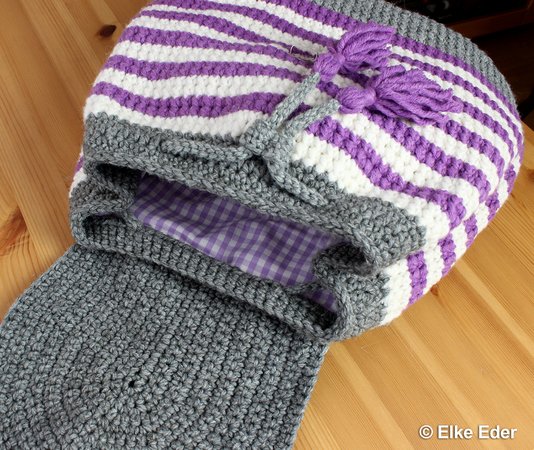 Ausführliche Beschreibung als PDF-Datei mit Häkelschrift für den Taschenboden, Text und Arbeitsschrittfotos.