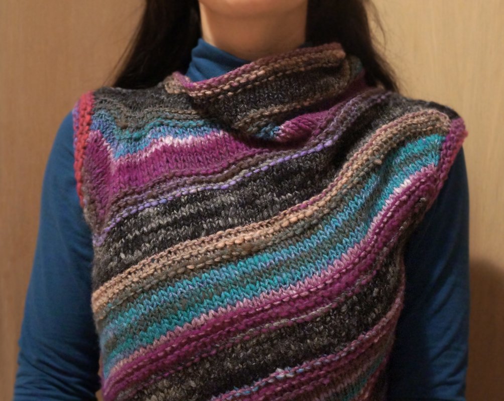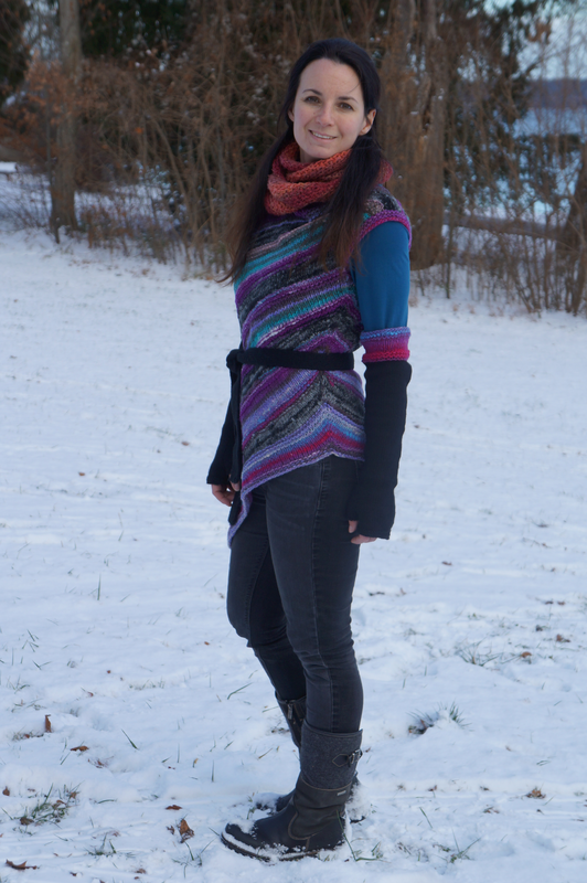 Zum Neujahr gestrickt und kuschelig warm. Der Pullunder im Tunikastil sollte mit einem Garn mit einer Lauflänge von ca. 100m/50gr gestrickt werden. Der Pullunder im Bild wurde mit dem Garn Kureyon von Noro (Farbe 349) gestrickt, die graumelierten Partien wurden mit einem selbstgesponnen Garn gearbeitet, hier kannst Du entweder auch mit Kureyon arbeiten oder ein anders unifarbenes bzw. melliertes Garn wählen.