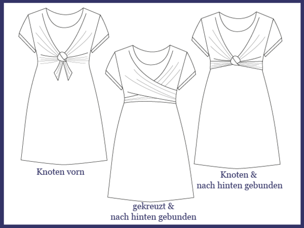 Die Bänder einfach gekreuzt und hinten geknotet, geknotet und hinten geknotet oder einfach nur ein Knoten vorn.