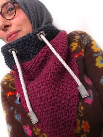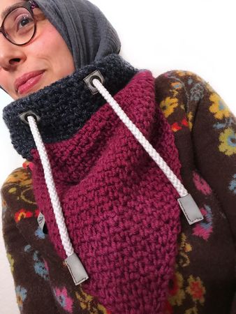 Mit dieser Anleitung kannst Du mit beliebiger Wolle und Stärke einen top trendy Schalkragen im Hoodie-Stil selbst häkeln.