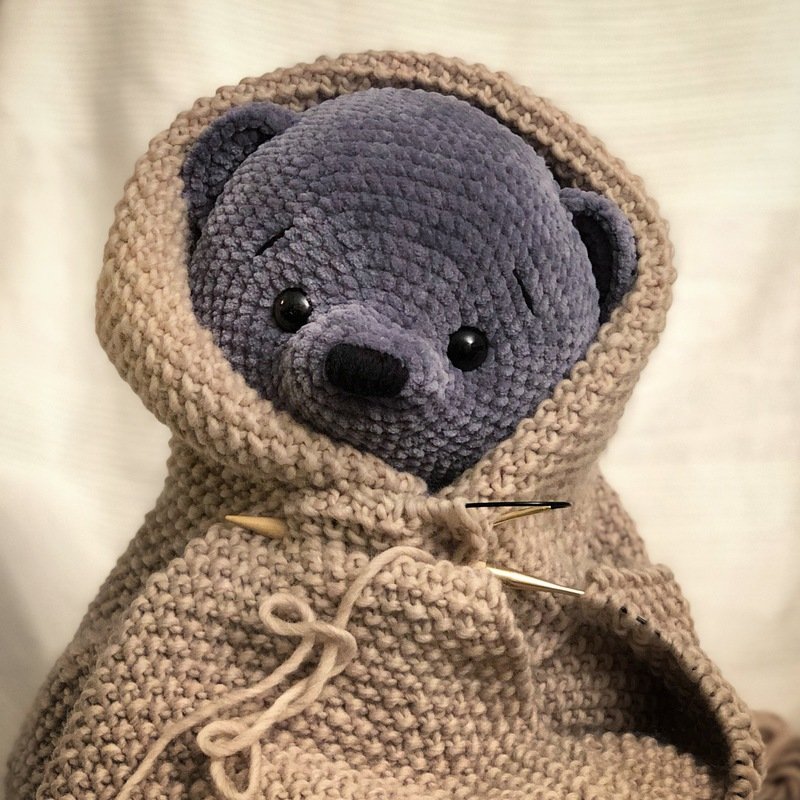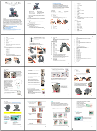 • mit der gängigen Baumwolle (50g/125m) wird der Teddy ca. 30 cm