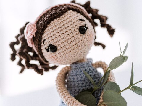 • GRÖSSE: Lina wird ca. 25 cm groß (Beachte: Die Größe variiert je nach Wolle, Häkelnadel und der Art wie fest oder locker man häkelt)