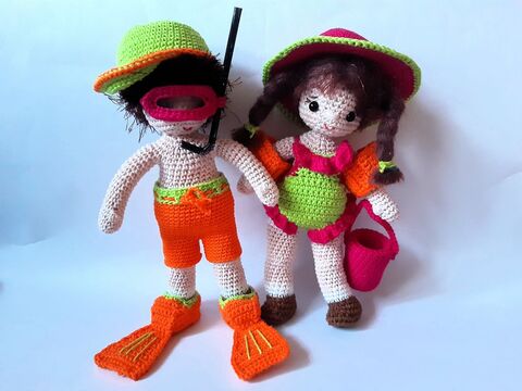 • die Beine und die Arme werden im Verlauf dran gehäkelt und müssen nicht angenäht werden.