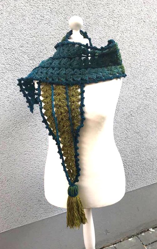 Der Schal „Aruba“ wiegt fertig 320 Gram