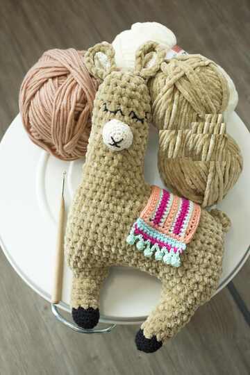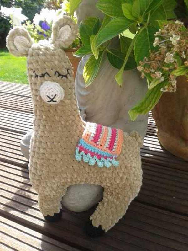 Ein superweiches Kuschellama. Gehäkelt wird es mit der Myboshi Samt und Häkelnadel 4,5. Da ist das Tierchen