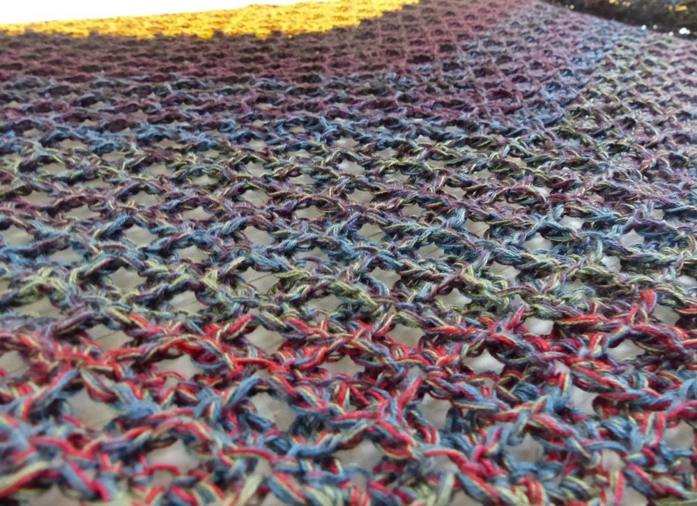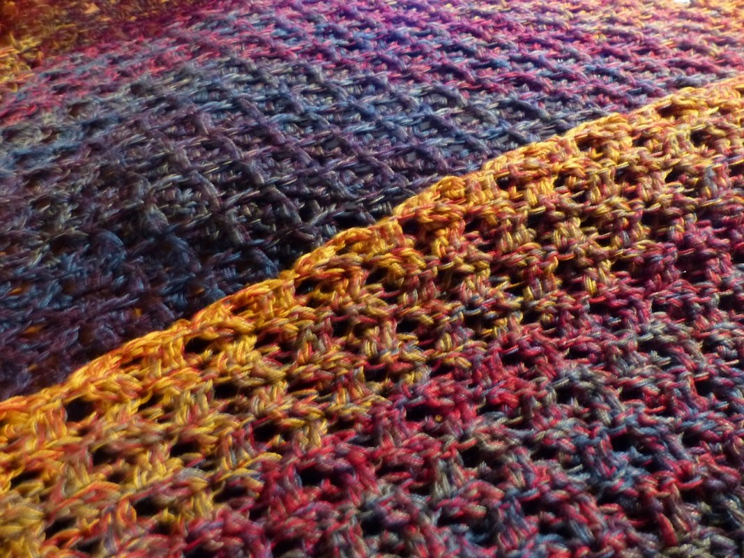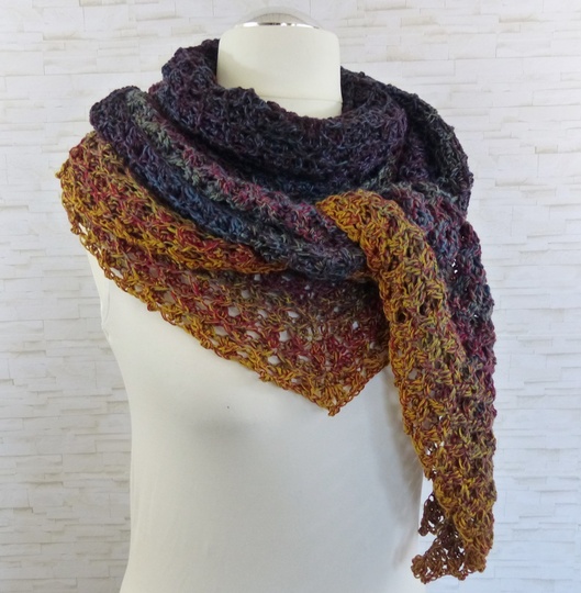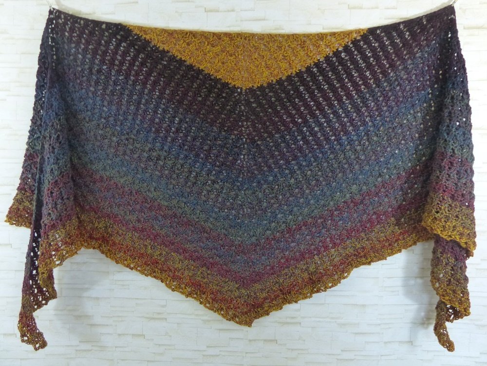 Das Tuch ist eher schmal und länglich, daher auch ideal zu tragen. Die Größe kann selbst bestimmt werden, da sich das Muster alle zwei Reihen wiederholt.