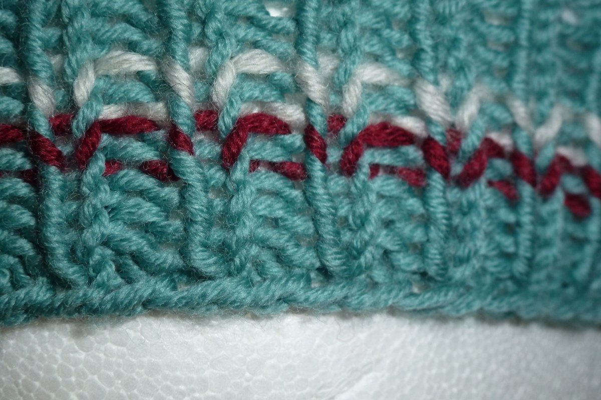 Eine gestrickte Mütze mit einem besonderen Muster, sie wirkt auch wunderschön in schwar-weiß !