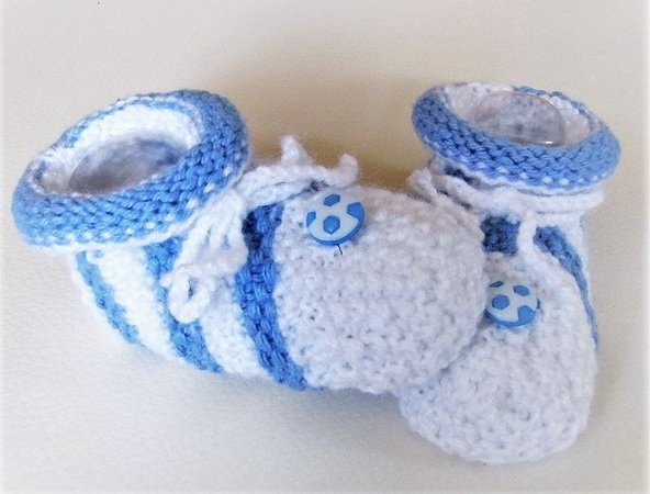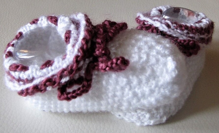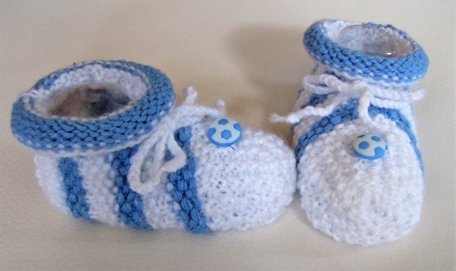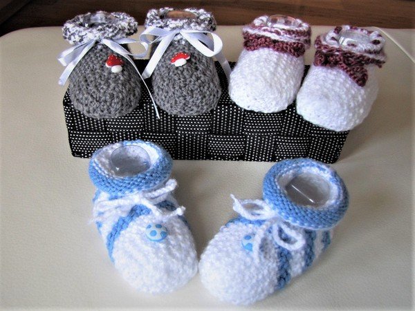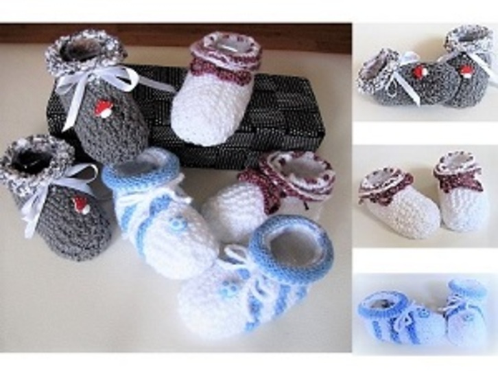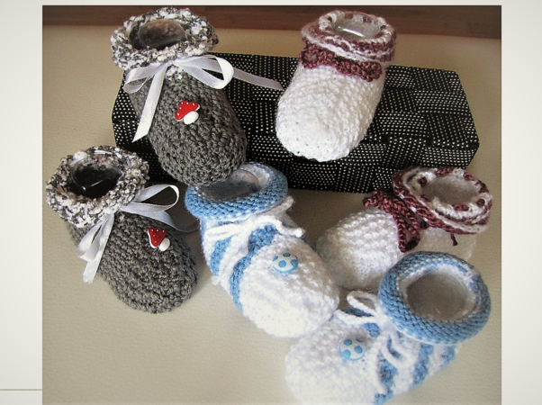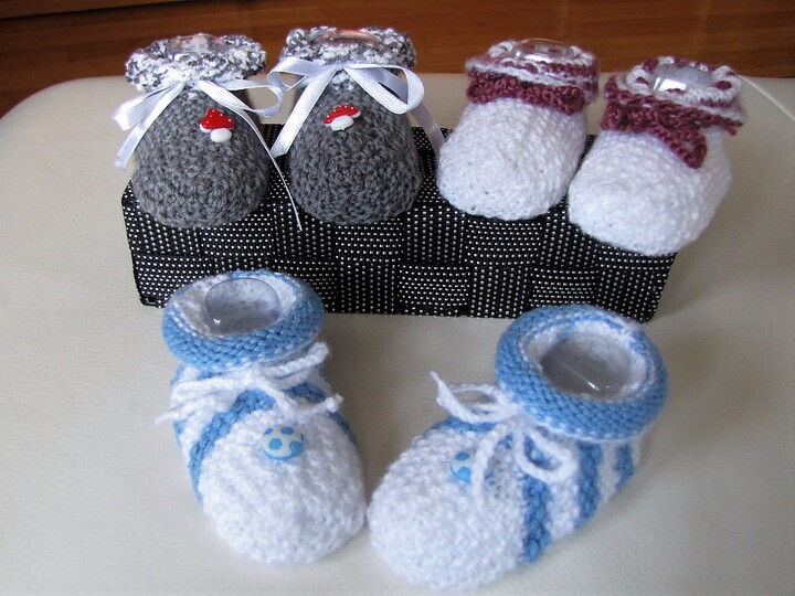 Die Sohle wird über 2 Nadeln gestrickt und der Rest mit dem Nadelspiel.