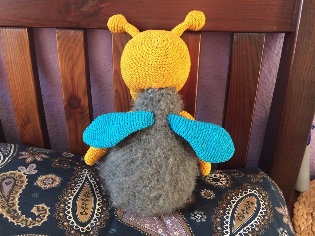 Frank ist ein bisschen pummlig, denn er liebt gutes Essen! Er ist schön flauschig und kuschelt sehr gerne! Um diesen bunten Käfer zuhäkeln benötigt ihr Baumwollgarn in LL125/50g z.B. von Schachenmayr"Catania"ca.80g in Gold, 25g in Pfau (Blau), 13g in Steingrau und Reste in Natur und Schwarz! Für den Körper braucht ihr Mischgarn in LL75m/100g z.B. Schoeller+Stahl "Semira" ca.80g in Grau!