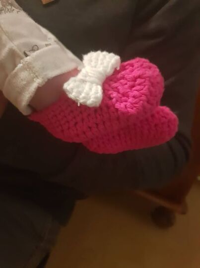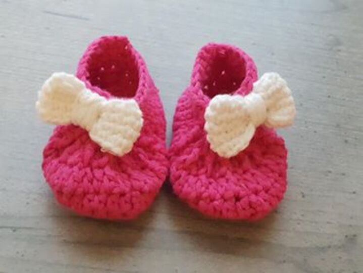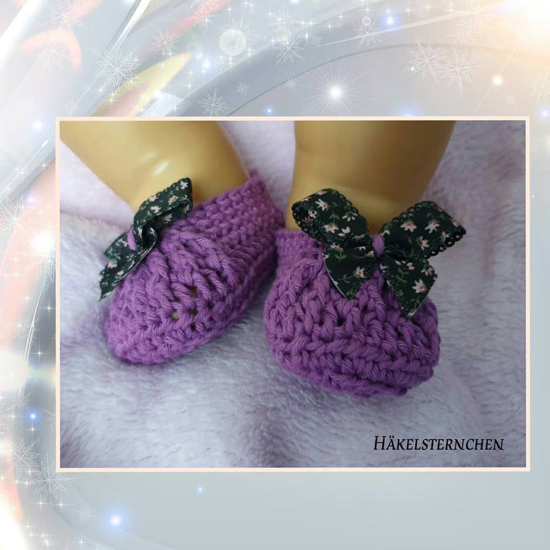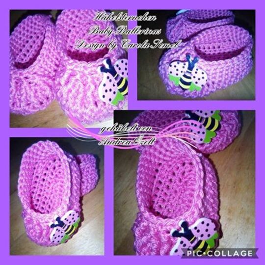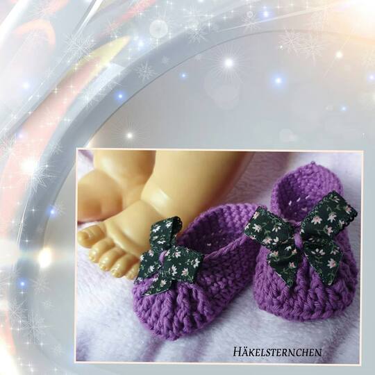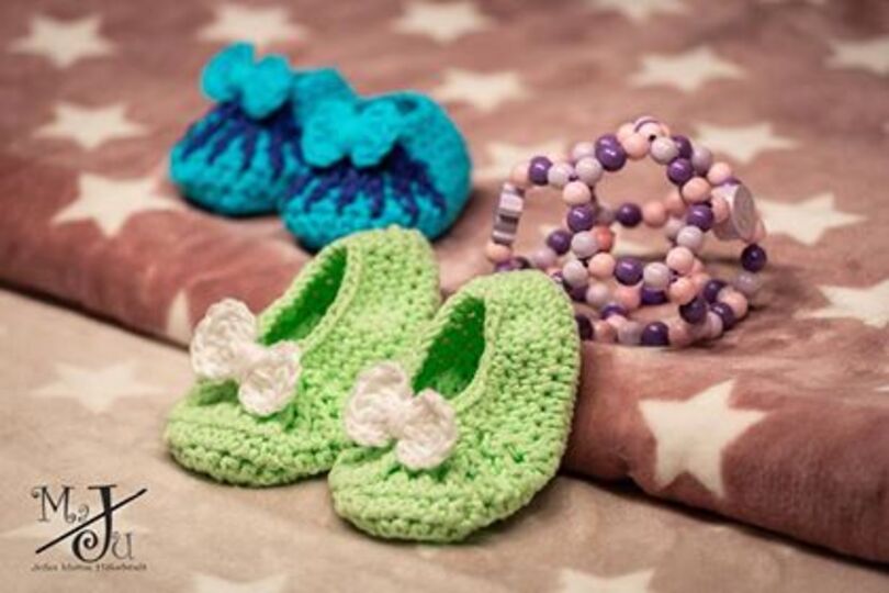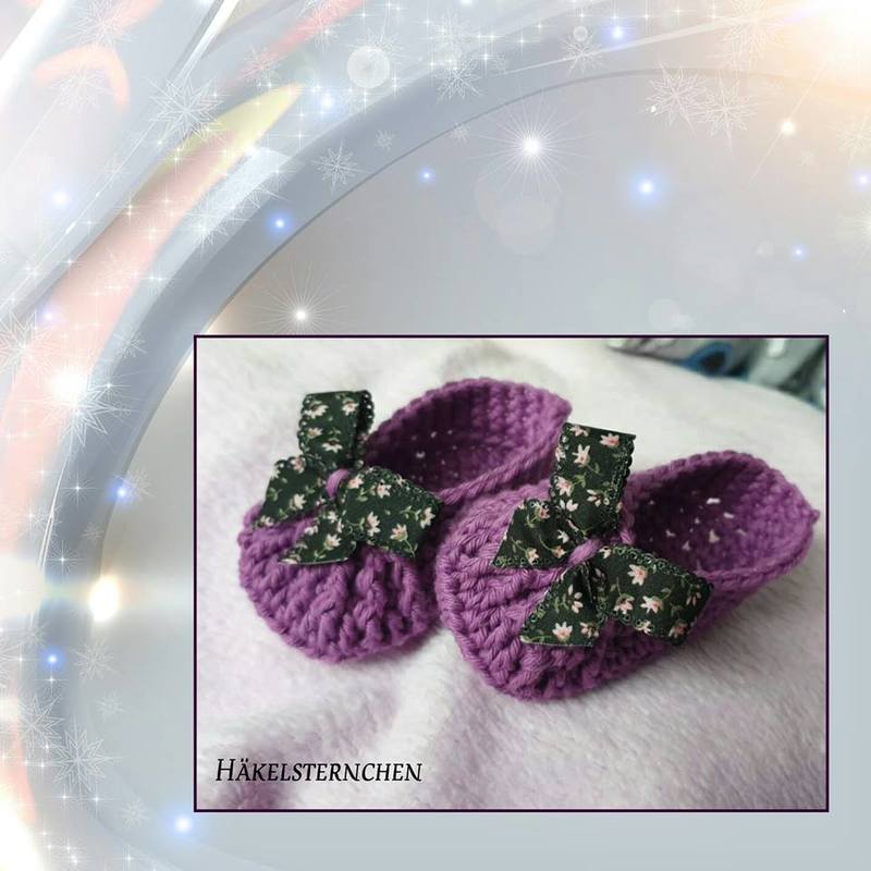 Hier erkläre ich Dir wie Du in 3 unterschiedlichen Größen: 0-3 Moante; 3-6 Monate; 6-9 Monate solche bezaubernden Schühchen schnell selber häkeln kannst.