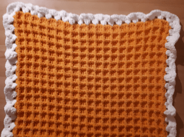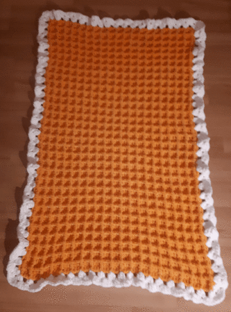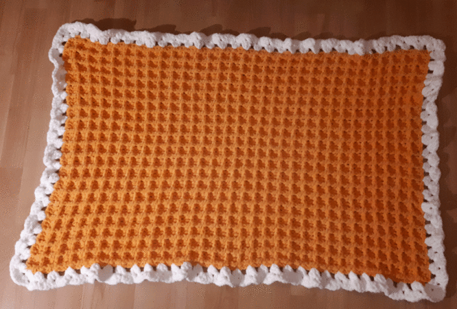 Für diese Decke habe ich Chenille-Garn verwendet. Ganz ideal für Babys, da sie sehr weich und kuschelig ist.