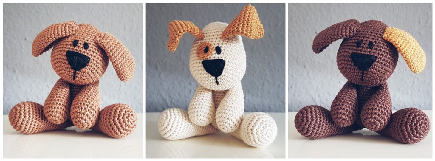Bin allerdings nicht so gut mit den Ohren des weißen Hundes klar gekommen.Hier wären noch mehr Infos zum Annähen hilfreich. Habe meiner Nichte den hellbraunen Hund zum Geburtstag gehäkelt.
