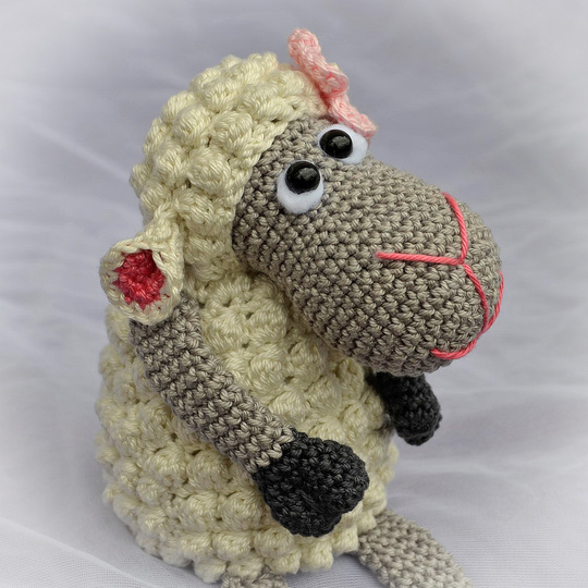 Für den Körper und die Haube im Noppenmuster geht ziemlich viel Wolle drauf. Je nachdem wie locker du häkelst auch mehr als angegeben. Sorge also für ausreichenden Wollvorrat.