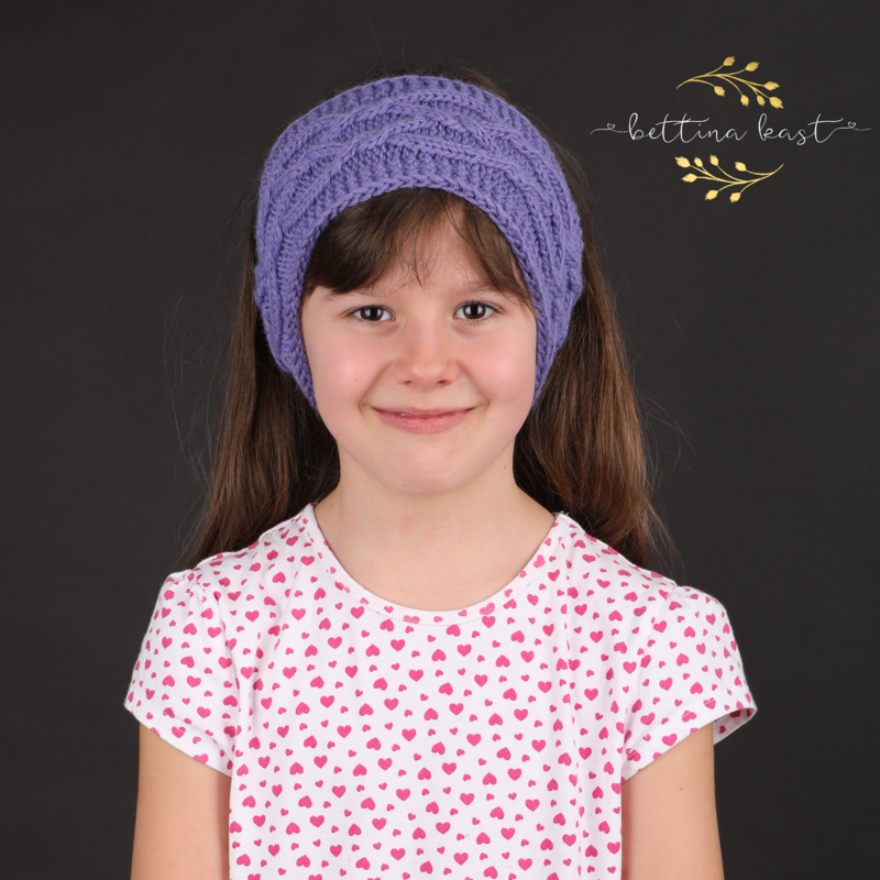 Das Stirnband ist quergestrickt. Daher lässt sich die Größe sehr einfach auf größere Kopfumfänge anpassen.