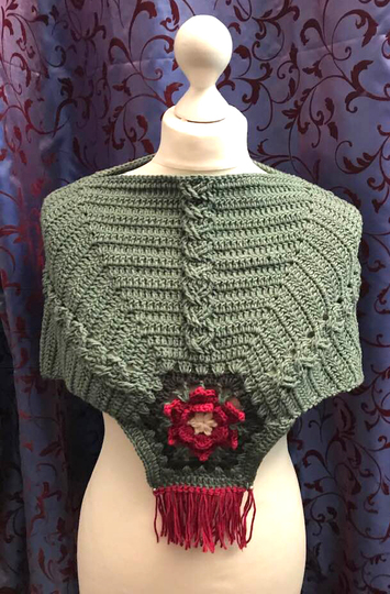 mein Schulterschmeichler "Jugendstil" hat dann die Größe 38-42 .....er ist einfach auch größer zu machen!....dann brauchst Du aber vielleicht mehr grüne Wolle!