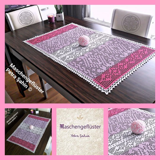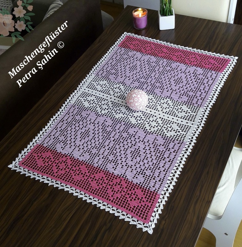Der Tischläufer ist mit 10er Alize Miss Filetgarn gearbeitet.