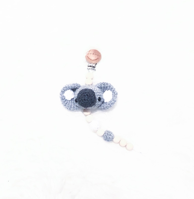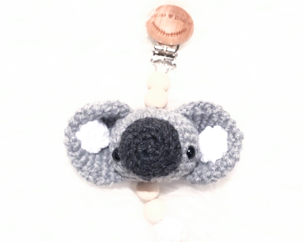 Mit dieser Häkelanleitung kannst du einen süßen kleinen Koalakopf häkeln. Geeignet zum Beispiel für Schnullerketten, Kinderwagenketten, Maxicosianhänger, Schlüsselanhänger, als Deko, Taschenbaumler usw.