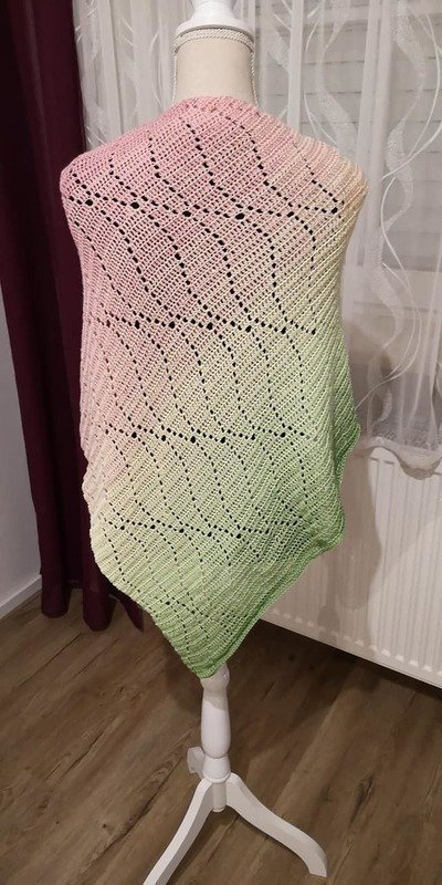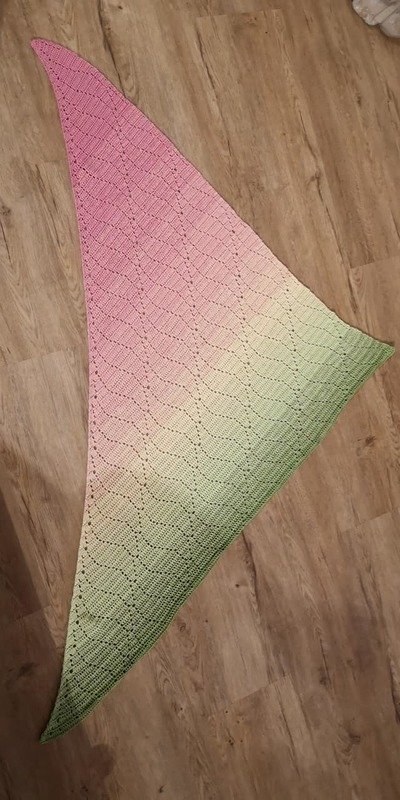 Die Anleitung ist für ein asymmetrisches Tuch. Die Anleitung ist ausgeschrieben und beinhaltet eine Häkelschrift.