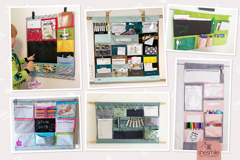 Nähanleitung und Schnittmuster gestaltet als PDF-E-Book für einen Familien-Wandorganizer aus Stoff "OttoOrdnung".