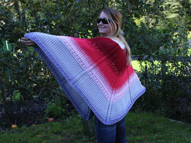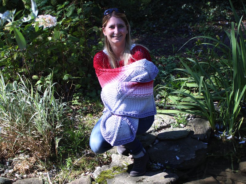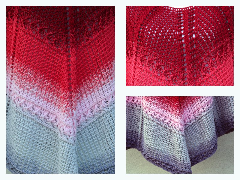 Der Poncho wurde mit einem 5fädigen Bobbel, ca. 1800 Laufmeter und Nadelstärke 4,5 gehäkelt.