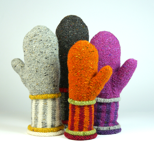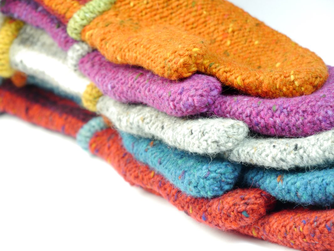 Die Farben der Wolle aus Irland laden zum Mixen geradezu ein – Sie können aber natürlich auch andere Wolle verwenden, Hauptsache, die Maschenprobe stimmt. Erfahrene Strickerinnen können jedes beliebige Garn verwenden und suchen sich dann die passende Größe in der Anleitung aus, damit der Handschuh größer oder kleiner wird.