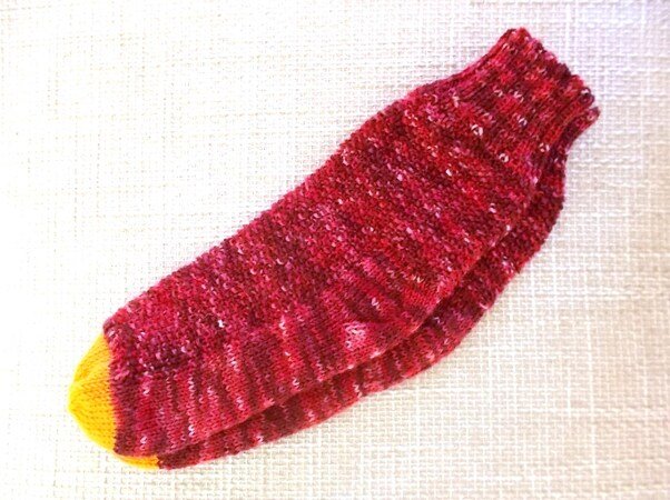 Hier brauchen keine Nadeln stillgelegt werden, denn alles wird einfach in Runden hoch gestrickt. Wie die Rundung im Fersenbereich nun genau entsteht, das erkläre ich in der Anleitung in Einzelschritten.