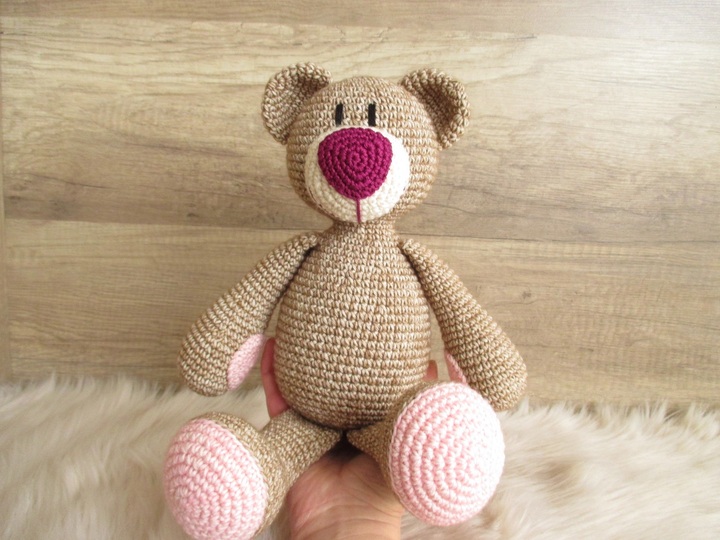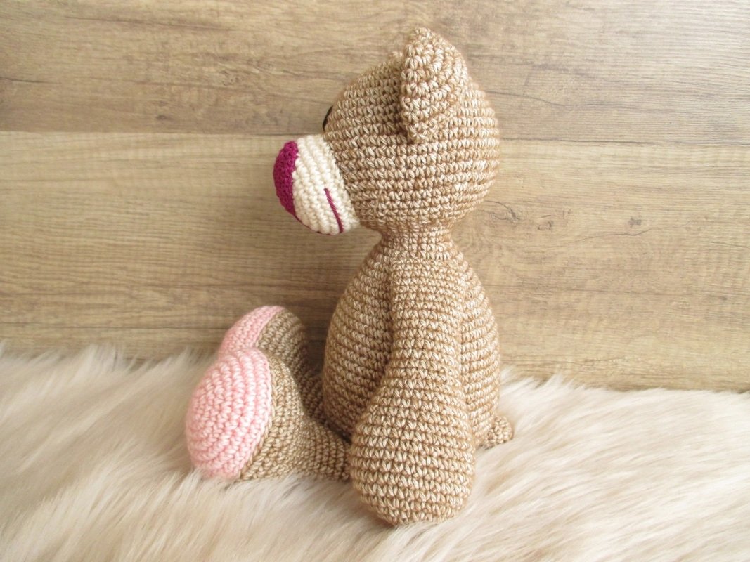 Die ausführliche Häkelanleitung zeigt Dir auf 12 Seiten mit vielen Bildern, wie Du Schritt-für-Schritt zu Deinem Lieblingsteddy gelangst ♥