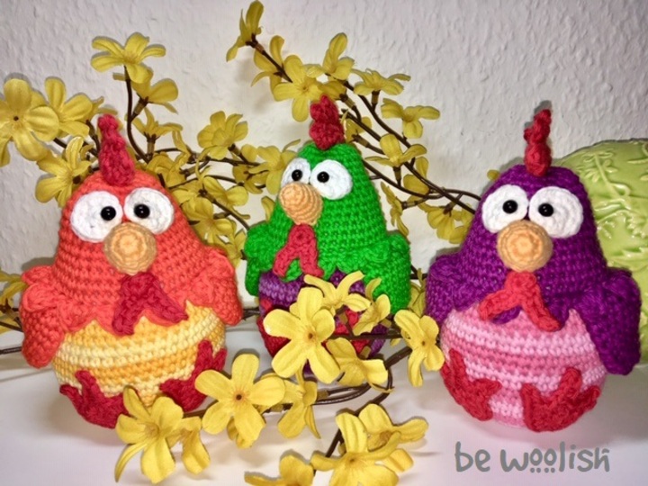 Ob einzeln oder als verrückter Hühnerhaufen ist Heddy ein wahrer Hingucker auf der Ostertafel oder als kleines Mitbringsel zum Osterfest. Heddy passt durch die Vielzahl von möglichen Farbkombinationen zu jeder Osterdeko und eignet sich ideal um Wollreste zu verarbeiten.