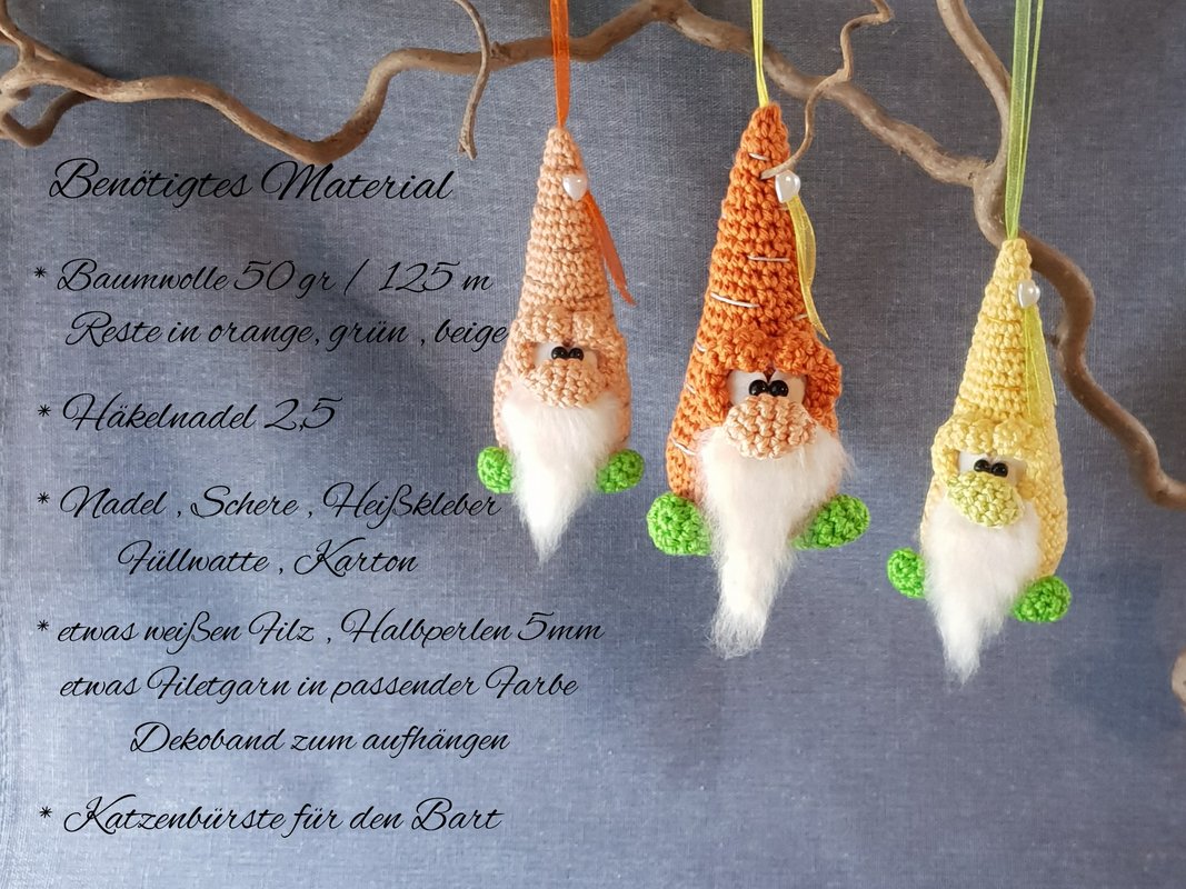 Die kleinen Möhrenwichtel werden mit angegebenen Material 9 cm groß