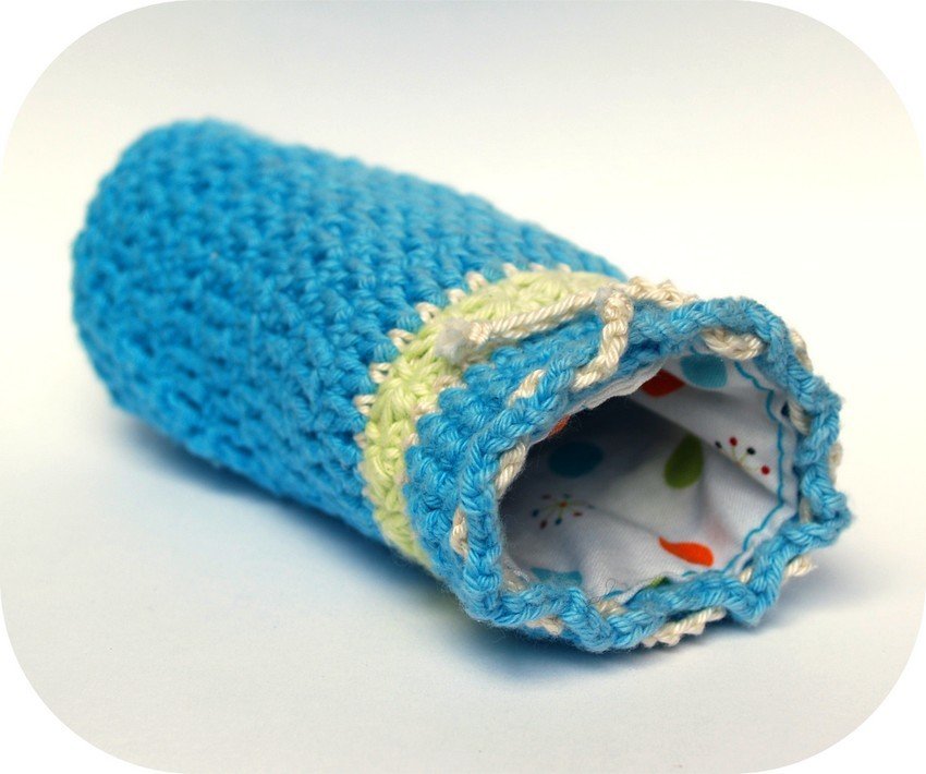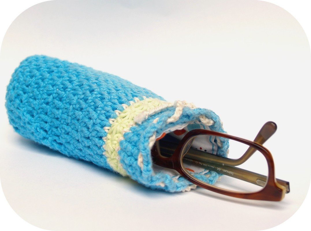 Es muss nicht immer Kunststoff sein: Dieses Brillenetui ist mit Baumwollgarn gehäkelt und innen mit einem bunten Baumwollstoff gefüttert. Damit ist Ihre Brille nicht nur schön, sondern auch weich und stabil verpackt.