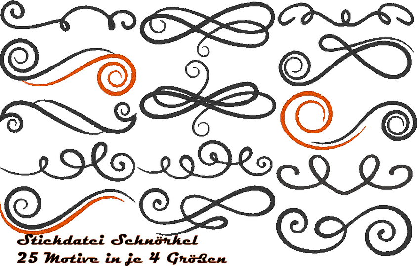 ♥ Stickdatei für Schnörkel in je 4 verschiedenen Größen ♥
