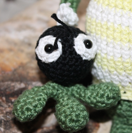 Diese Häkelanleitung beinhaltet die Beschreibung für den Kantensitzer Frosch und seine Fliege.