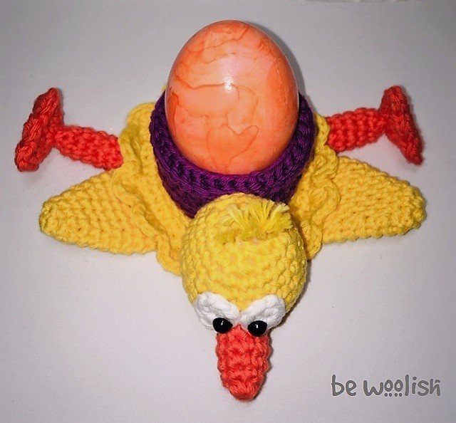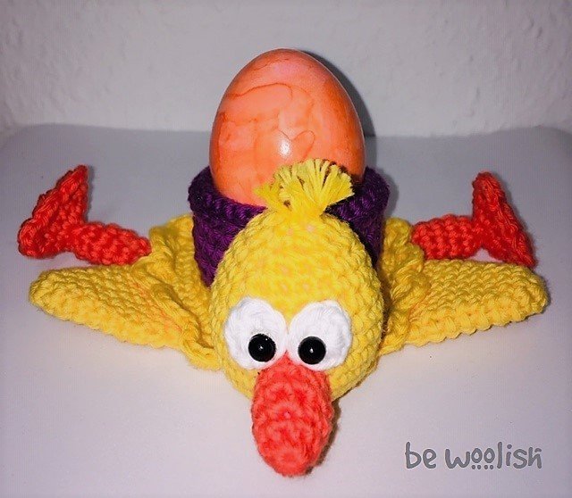 Mit der angegebenen Wolle wird der Eierbecher ca. 14 cm groß. Die Größe kann natürlich individuell über die Wolle und Nadelstärke angepasst werden.