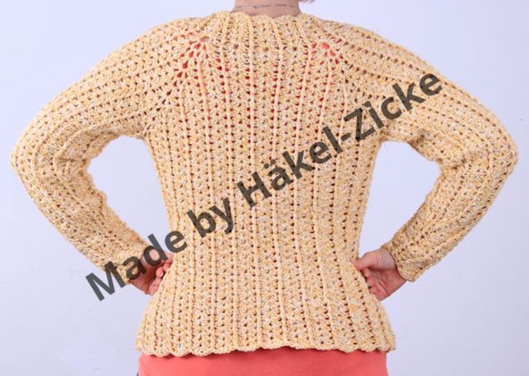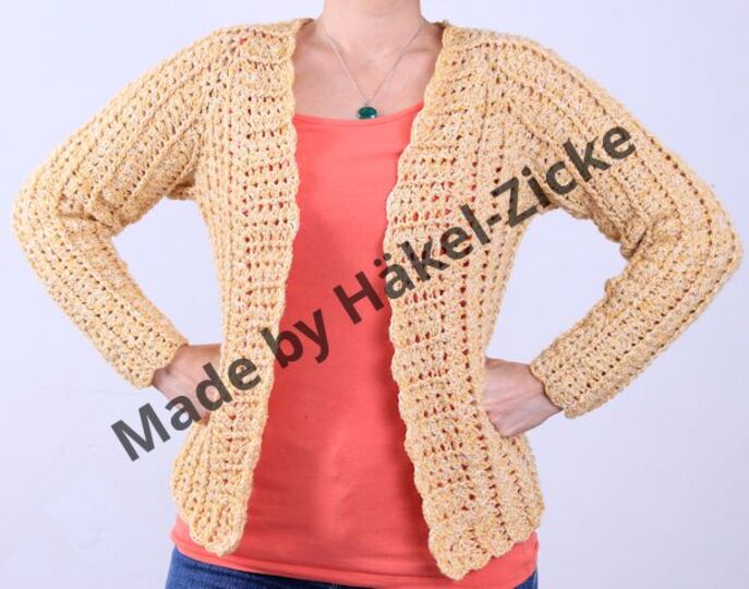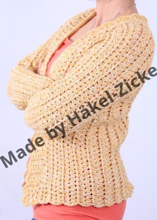 Die Anleitung ist für Größe 36 bis 40 angegeben, aber ganz einfach erweiterbar. So hat z.B. eine ganz liebe Häkelfee das Modell als Boleo in Gr. 128 für Ihre Tochter gehäkelt. Einfach mit dünnerem Garn und weniger Runden. Aber auch Größen bis XXL sind einfach zu realisieren, durch mehr Runden im Brustpassenbereich.