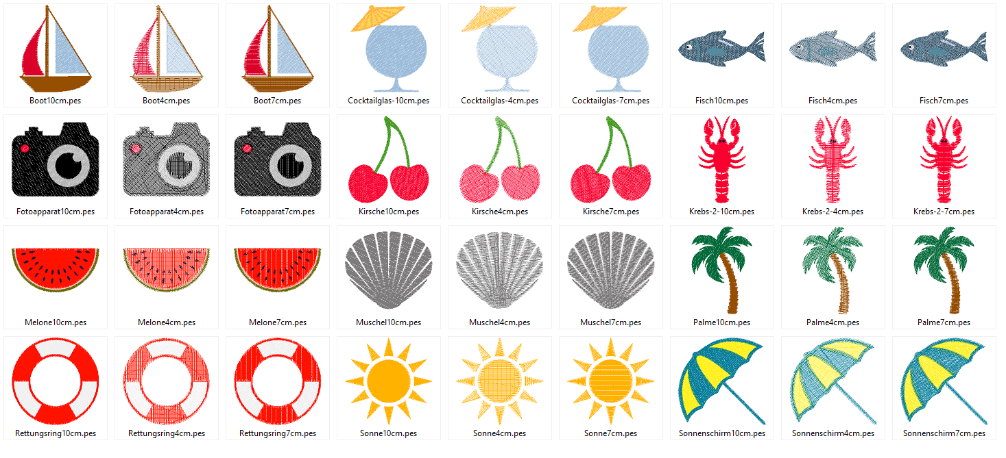 ♥ Stickdatei für wunderschöne Sommer Motive in je 3 verschiedenen Größen ♥