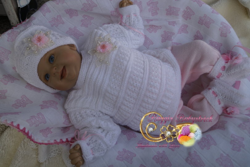 Strickanleitung für ein wunderschönes Set, 3-teilig für Babys & Reborns, Gr. 56 Das Set ist aus Babysoftwolle Nd. - Nr. 3 gestrickt. Die Anleitung ist sehr genau beschrieben und mit vielen Fotos. Auch ohne viel Strickerfahrung kannst Du mit dieser Schritt – für – Schritt – Anleitung dieses Set leicht nacharbeiten.