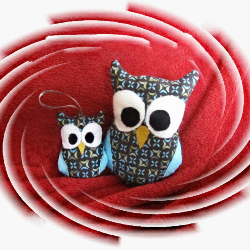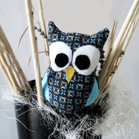 Die große Eule ist ein niedliches Kuscheltier oder Dekorationsobjekt, welches mit unterschiedlichen Stoffen immer wieder neu in Szene gesetzt werden kann.