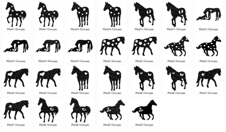 Ihr bekommt 13 Pferde in je 2 Größen für den 10cm und 13x18cm Rahmen